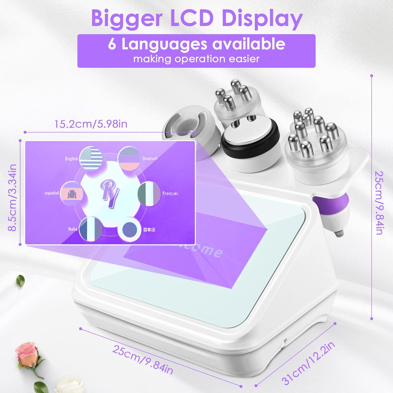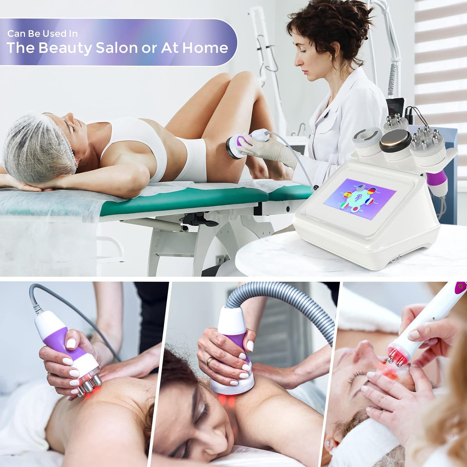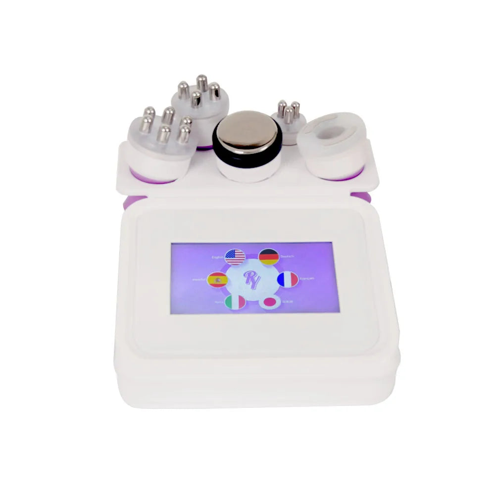 Máquina de cavitación con 5 sondas diferentes. Cada uno tiene efectos únicos y se aplica en diferentes partes del cuerpo. Sonda de RF de 3 polos para los ojos y la cara, de 4 polos para la cara y el cuerpo, de 6 polos RF, de 40K y de presión negativa para el cuerpo. Satisface tus diferentes necesidades de cuidado corporal.